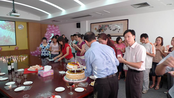 在溫情的八月迎來了華遠集團創(chuàng)始人嚴(yán)文亮先生的生日,華遠集團員工自發(fā)為嚴(yán)總舉辦了一個神秘而又驚喜的生日Party。粉色的氣球、雙心相交的生日蠟燭、醇香的美酒、誘人的蛋糕,點燃了現(xiàn)場的氣氛也傳遞出了參與者的喜悅。在舉杯共慶之時大家道出了自己內(nèi)心最真誠的祝福。8月份過生日的員工,幸運地同嚴(yán)總共同分享這份溫馨與快樂,并合影留念。