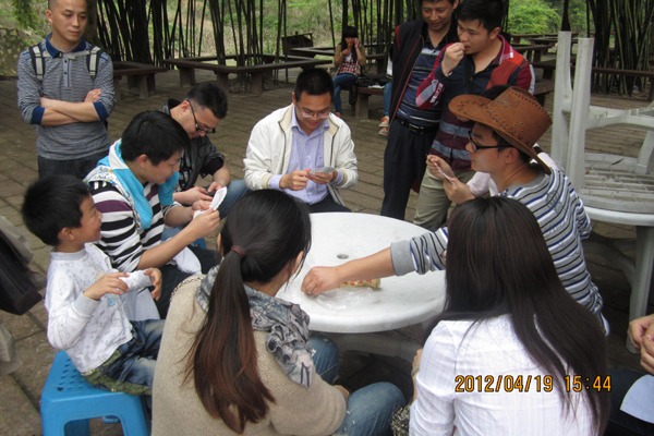 經(jīng)過(guò)愉快的車(chē)程,快到目的地時(shí),大家已經(jīng)迫不及待的想要下車(chē),呼吸大自然的新鮮空氣。這里到處都是綠色的:山上、小草、亭子,就連小溪的水好像也是綠色的!大家都沉浸在這秀麗景色中,有說(shuō)有笑、盡情游玩,有的玩撲克,有的吃東西,有的攝影,其樂(lè)融融,營(yíng)造了一個(gè)和諧團(tuán)隊(duì)氛圍。